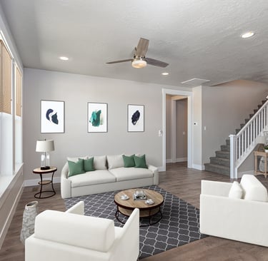 Realistic virtually staged photo transforming empty spaces into beautifully furnished rooms, helping buyers envision the home's full potential.